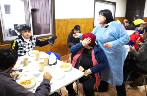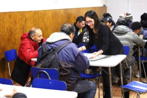 Quienes acuden al Espacio Misericordia quedaron muy contentos con la atención entregada, y los gorros de lana que recibieron como obsequio de uno de los grupos de voluntarios presentes.