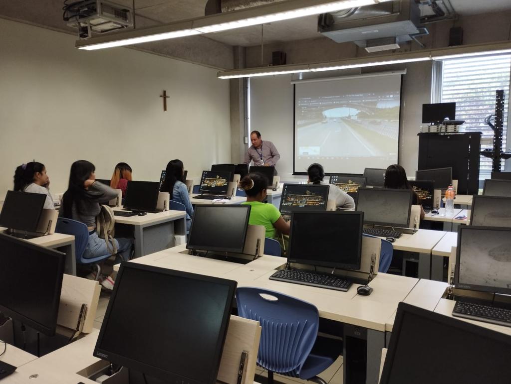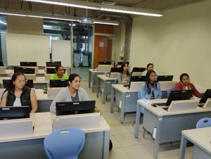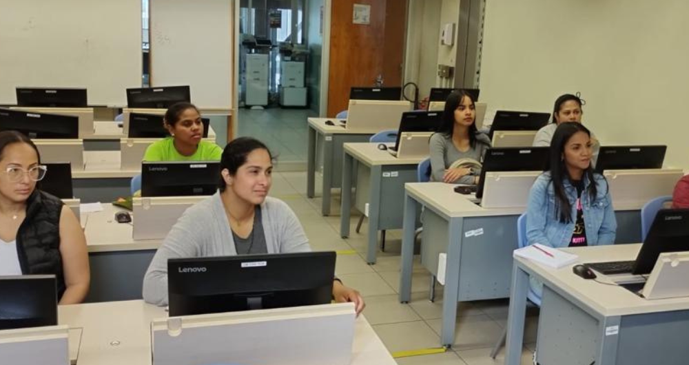 Un grupo de mamás del Proyecto Belén, iniciativa de la Pastoral Familia y Vida, se encuentran participando en un curso de actualización informática en el DuocUC.