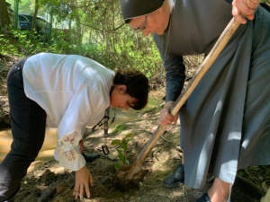 También plantaron dos canelos y subieron hasta donde se encuentra la imagen de la Virgen María, donde celebraron la Santa Misa.