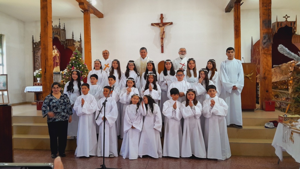 En tanto, 22 niños hicieron su Primera Comunión en la Parroquia San Pedro de Coronel, en una Misa presidida por el padre Orlando Henríquez, este domingo 29 de diciembre. Además, algunos de ellos recibieron el sacramento del Bautismo.