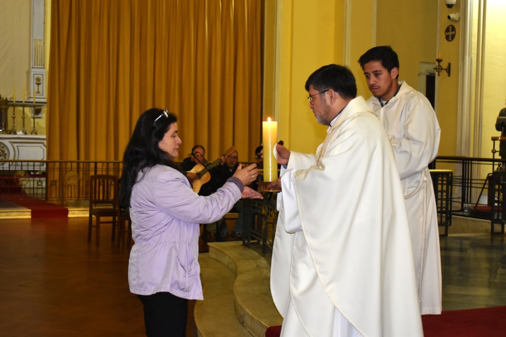 La acogida en el Convento fue cerca de las 10 de la mañana, donde hubo confesiones, rezo del rosario y un momento de reflexión. Luego se peregrinó hasta el Templo Catedral, donde también hubo confesiones y un instante para la oración antes de la Eucaristía, que presidió el Pbro. Claudio Alarcón, asesor arquidiocesano de los MEC, junto a los sacerdotes Stephen Awotwe Baidoo y Gordon Owusu-Cobbinah, llegados recientemente desde Ghana. El celebrante señaló que “la invitación es a que vivamos este Jubileo como lo dice su lema, siendo Peregrinos de la Esperanza, y que seamos portadores de esperanza para todos aquellos que se sienten débiles en su salud y enfermedad, para que puedan encontrar a Jesús”.