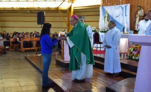 Cinthia Cruz, de la Parroquia Cristo Peregrino del Valle Araucano, expresó su emoción y agradecimiento al recordar estos doce años de Monseñor Fernando en la Arquidiócesis, “porque es gracias a él que tenemos esta nueva parroquia. Aunque él diga que es todo gracias al Señor, pero él también contribuyó. Estoy muy agradecida y espero que en Santiago le pueda ir muy bien”.