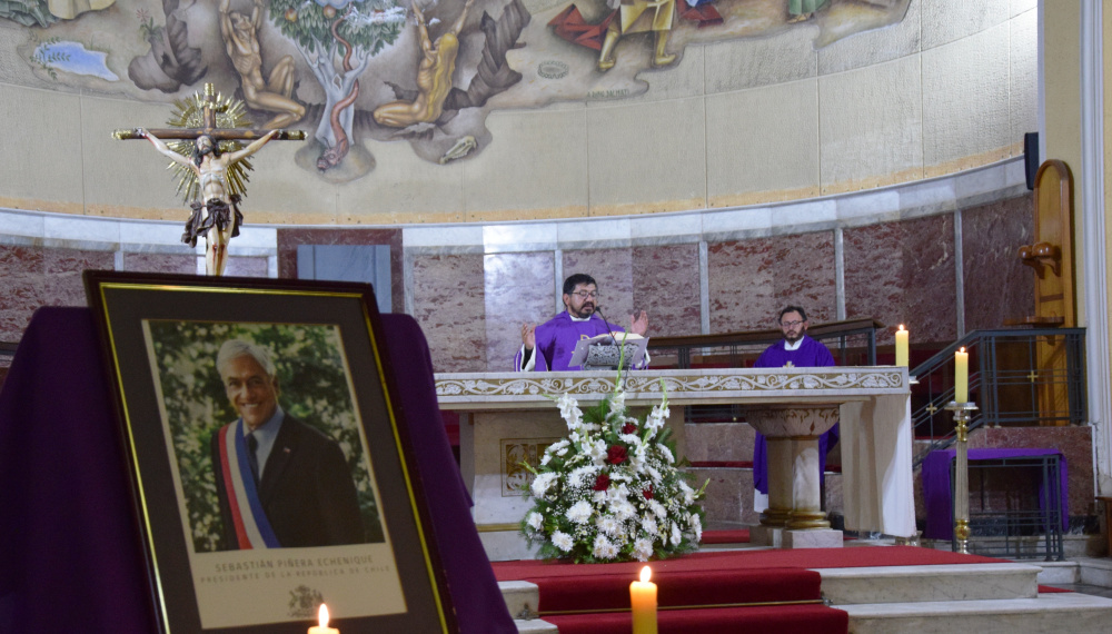 En su homilía, el Pbro. César Pedreros destacó que, ante las situaciones adversas, Sebastián Piñera no se quedaba sentado mirando, sino que se ponía de pie, “invitando a cada chileno a salir de sí mismo para ayudar a los demás” y de esta forma levantando a Chile.