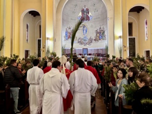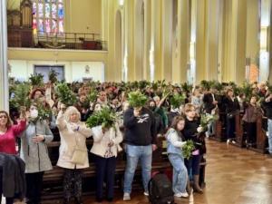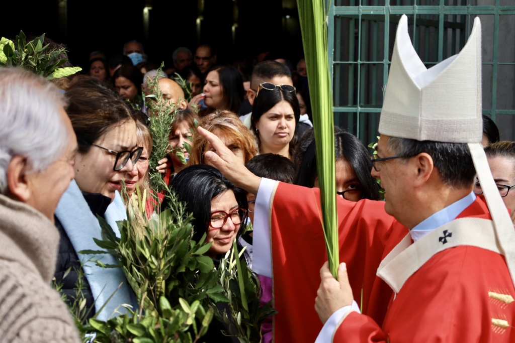 La celebración comenzó en las puertas de la catedral, donde se realizó la tradicional bendición de los ramos. En ese contexto, Mons. Pérez de Arce invitó a los presentes a acoger a Jesús en sus vidas con fe y gratitud. Asimismo, recordó la realidad de violencia que vive el mundo, y animó a todos a ser constructores de paz: “Sabemos que vivimos un tiempo difícil, de guerras, de violencia. Por eso, queremos venir a Jesús y pedirle que nos ayude a construir la paz”.