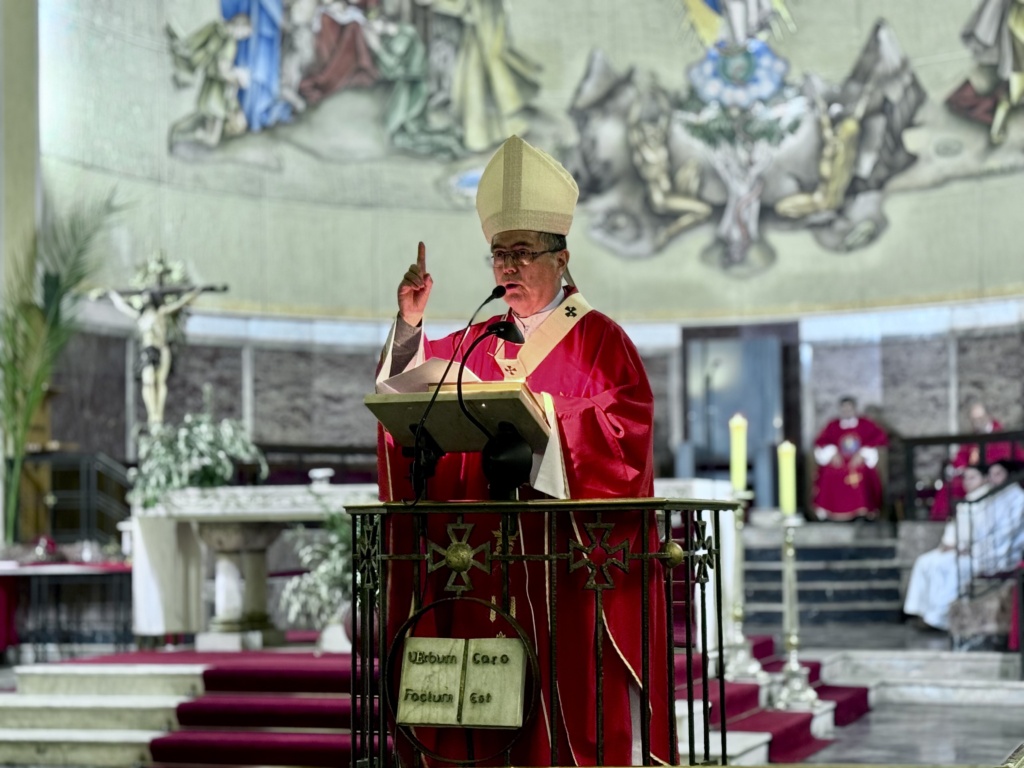 Finalmente, recordó el ejemplo de quienes permanecieron fieles junto a Jesús en su pasión: las mujeres que lo acompañaron, Simón de Cirene, el centurión y el buen ladrón: ” Así que la invitación a todos los que estamos aquí, es a elegir al Señor, a optar por nuestra fe y a cuidarla”.
