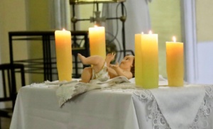 Al término de la Misa de Nochebuena, algunos fieles llevaron una vela encendida y la depositaron a un costado de la imagen del Niño Dios.