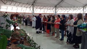 Durante la celebración eucarística, el Obispo Auxiliar bendijo las figuras del Niño Jesús, que serán puestas en los pesebres de los hogares de los fieles de la comunidad al finalizar la novena.
