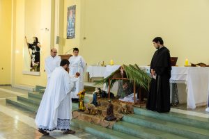 “Jesús, te miramos, acurrucado en el pesebre. Te vemos tan cercano, que estás junto a nosotros por siempre. Gracias, Señor. Te contemplamos pobre, enseñándonos que la verdadera riqueza no está en las cosas, sino en las personas, sobre todo en los pobres. Perdónanos, si no te hemos reconocido y servido en ellos. Te vemos concreto, porque concreto es tu amor por nosotros, ayúdanos a dar carne y vida a nuestra fe. Amén” (Papa Francisco)