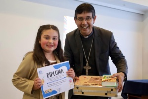 En la ceremonia participaron familias de distintos sectores de la Arquidiócesis, junto al Obispo Auxiliar, Mons. Oscar García, quien presidió un momento de oración y felicitó a los niños por su talento y dedicación. El pastor agradeció también a las familias que los acompañaron, recordando que “todos estamos llamados a tener un alma de niño, a ser humildes y sencillos para que el Señor nos reconozca y premie de manera especial, porque como dice Jesús, el que no se hace como niño no entrará en el Reino de los cielos”.