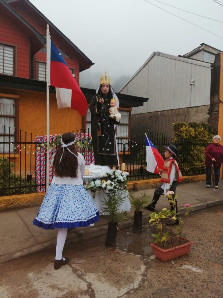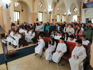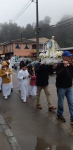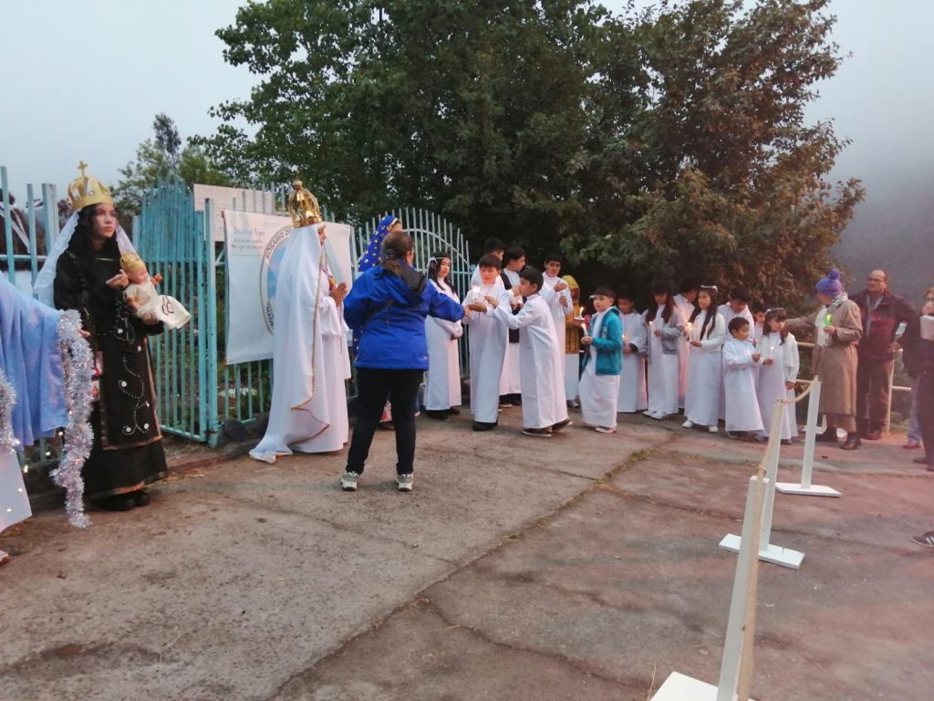 En tanto, los 20 niños de la Parroquia Cristo Rey, participaron en una procesión presidida por una imagen de nuestra Madre por las calles de Bellavista.
