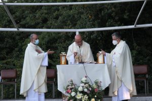 Las familias se reunieron al aire libre y pudieron escuchar contundentes testimonios, compartir momentos de canto, baile y oración. Y finalmente, participar en la misa, presidida por Monseñor Fernando Chomali.