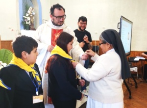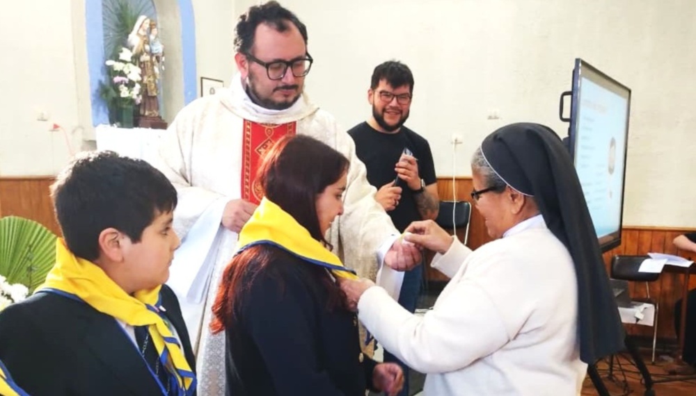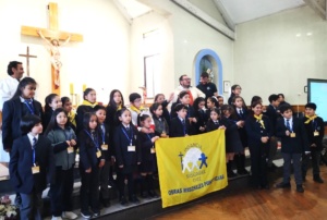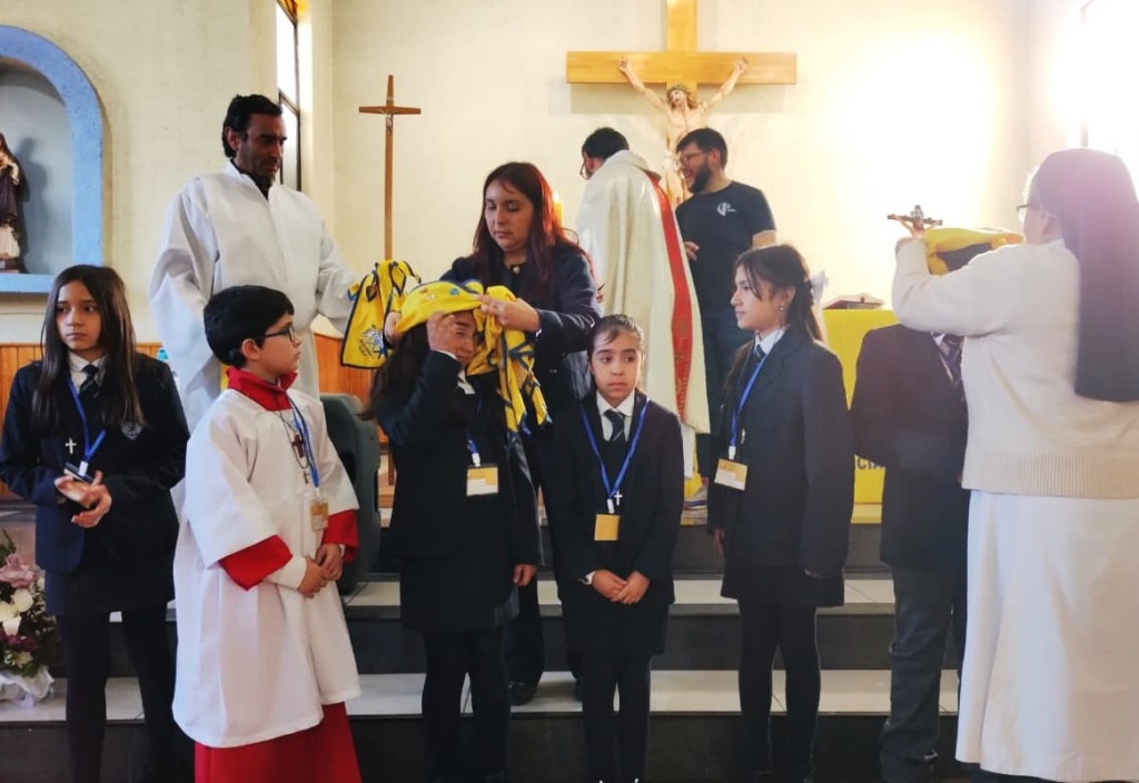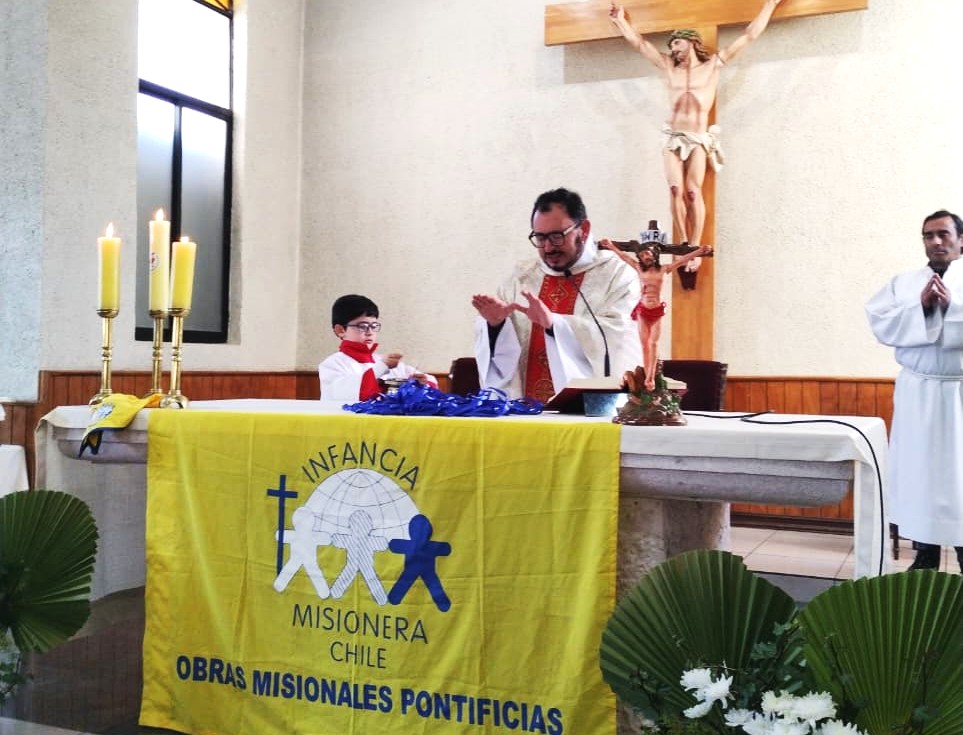 El signo se realizó en una Eucaristía presidida por el sacerdote Ricardo Valencia, asesor de la Vicaría Pastoral de Juventud y Niñez, en la Parroquia Santa Filomena de Cabrero. La actividad coincidió con la celebración del Día del Niño, y permitió entregar el pañolín a la profesora Karen Saavedra, quien es la encargada de Infancia Misionera en el colegio, y a un grupo de estudiantes que desde hace años habían perseverado en las enseñanzas que propone esta obra.