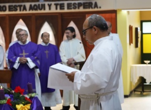 Tras la Plegaria de Ordenación, el padre Yuliano Viveros revistió al nuevo Diácono con los ornamentos propios de su ministerio: la estola diaconal y la dalmática. Luego, el obispo le entregó el Libro de los Evangelios, como signo de su misión. “Recibe el Evangelio de Cristo, del cual has sido constituido mensajero. Esmérate en creer lo que lees, enseñar lo que crees y vivir lo que enseñas”, le dijo.