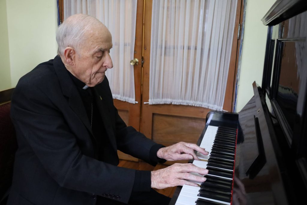 “Cuando pedí entrar al seminario, la exigencia que me puso el papá fue justamente que siguiera estudiando piano y aquí me tiene, lo llegué a tocar discretamente bien. Y después armonio y órgano, eso es cosa seria. Tocar el órgano de tubo, el clásico, porque hay que saber pedalear también”, agrega.