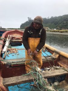 “Me encontré con un pescador que estaba sacando las pancoras de sus redes (…) y pude compartir con él, conocer un poco el trabajo. Estaba ahí haciendo una separación entre las pancoras hembras y los machos. Las hembras son devueltas al mar y para consumo quedan las pancoras macho”, relató.