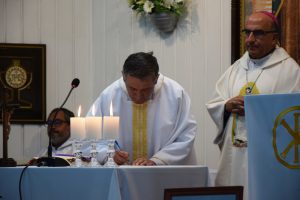 A las 11:00 horas de este sábado 24 de junio, el Padre Pedro Gómez tomó posesión como Párroco de la Parroquia Nuestra Señora de Guadalupe de Hualpén, en una Eucaristía que fue presidida por el Arzobispo de Concepción, Monseñor Fernando Chomali.