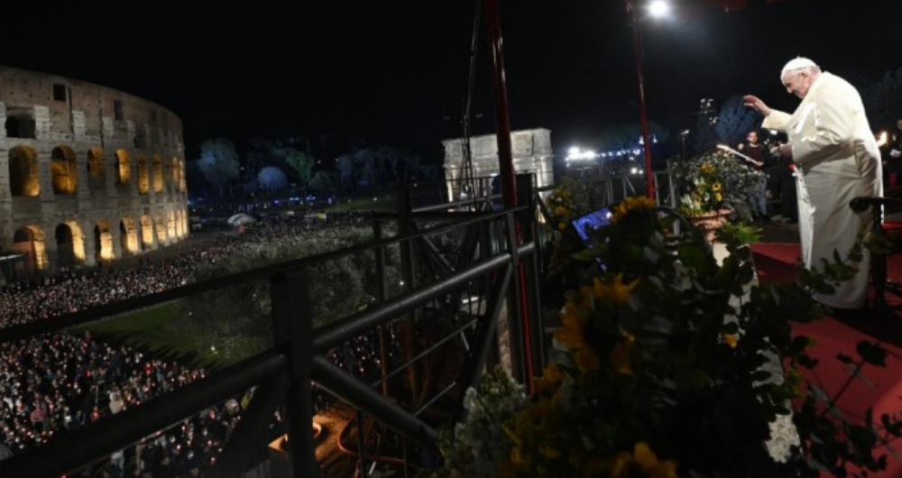 Cerca de 10.000 fieles y peregrinos -según la Questura de Roma- se congregaron en el Coliseo para acompañar al Papa Francisco en el conmovedor momento de oración y otros tantos se conectaron a la transmisión en directo a través de los medios y las redes sociales.