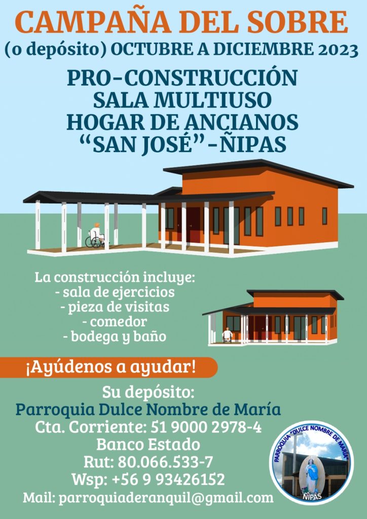 La Parroquia Dulce Nombre de María inició una “Campaña del Sobre” para colaborar con la construcción de una Sala Multiuso para el Hogar de Ancianos San José de Ñipas.