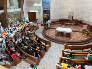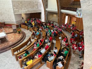 Los peregrinos de Chile que participarán en la Jornada Mundial de la Juventud, entre los que se encontraba la delegación de la Arquidiócesis de Concepción, se reunieron la mañana de este martes 1 de agosto en la Parroquia de Nossa Senhora dos Navegantes en Lisboa, para celebrar la Eucaristía.
