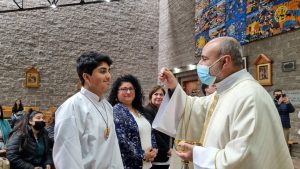 La Eucaristía fue presidida por el Padre Mauricio Aguayo, quien en su homilía afirmó que “la alegría de este día es una alegría que viene, en primer lugar, de Dios. El que está más contento de todos, más que nosotros, es Dios”
