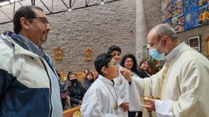 Antes de la bendición final, Jimena Beroiza, madre de dos de los niños que iniciaron su Vida Eucarística, manifestó que “este día es muy importante para las personas creyentes, sin embargo, para nosotros que tenemos hijos e hijas con capacidades diferentes es doblemente importante y significativo, porque hoy reciben el Cuerpo de Cristo, es decir su Primera Comunión”.
