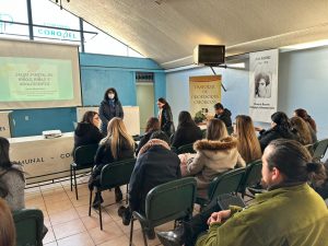 Kiyomi Barrera Soto, psicóloga clínica, fue la encargada de exponer el tema e indicó que la idea de esta jornada fue darles a “conocer un poco el concepto de salud mental aplicado a los niños, niñas y adolescentes y cómo pueden los profesores promover la salud mental en sus respectivos establecimientos educacionales”.