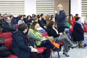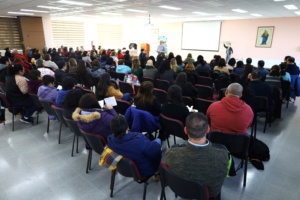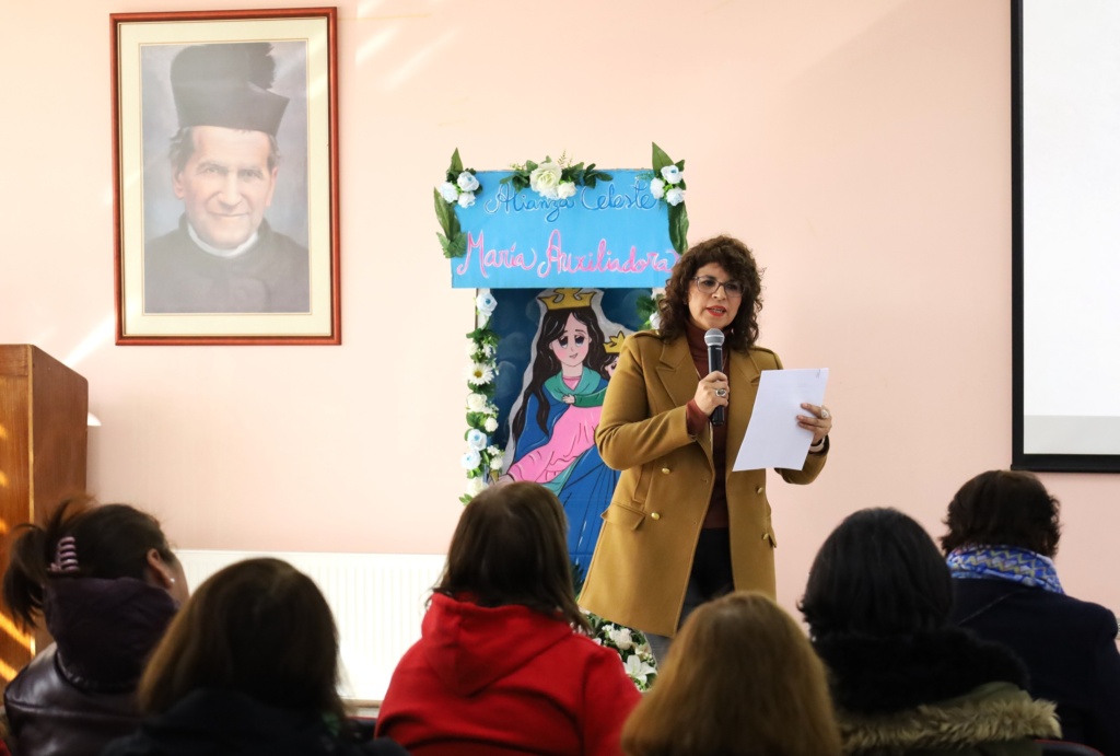 La Delegada Episcopal para la Educación, Adriana Fernández, dio la bienvenida y el saludo inicial, agradeciendo la presencia de los profesores pese al temporal de viento y lluvia que había afectado a la zona recientemente.