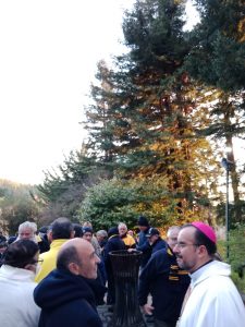 Los participantes llegaron hasta el Santuario de Schoenstatt junto al Obispo Auxiliar de Concepción, Monseñor Bernardo Álvarez, quien también es Madrugador, para rezar el Rosario y celebrar la Santa Misa.