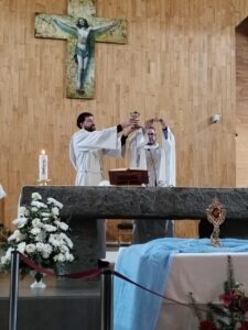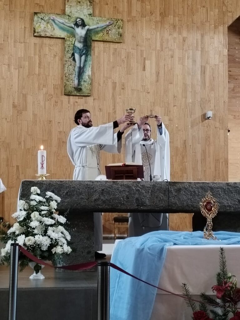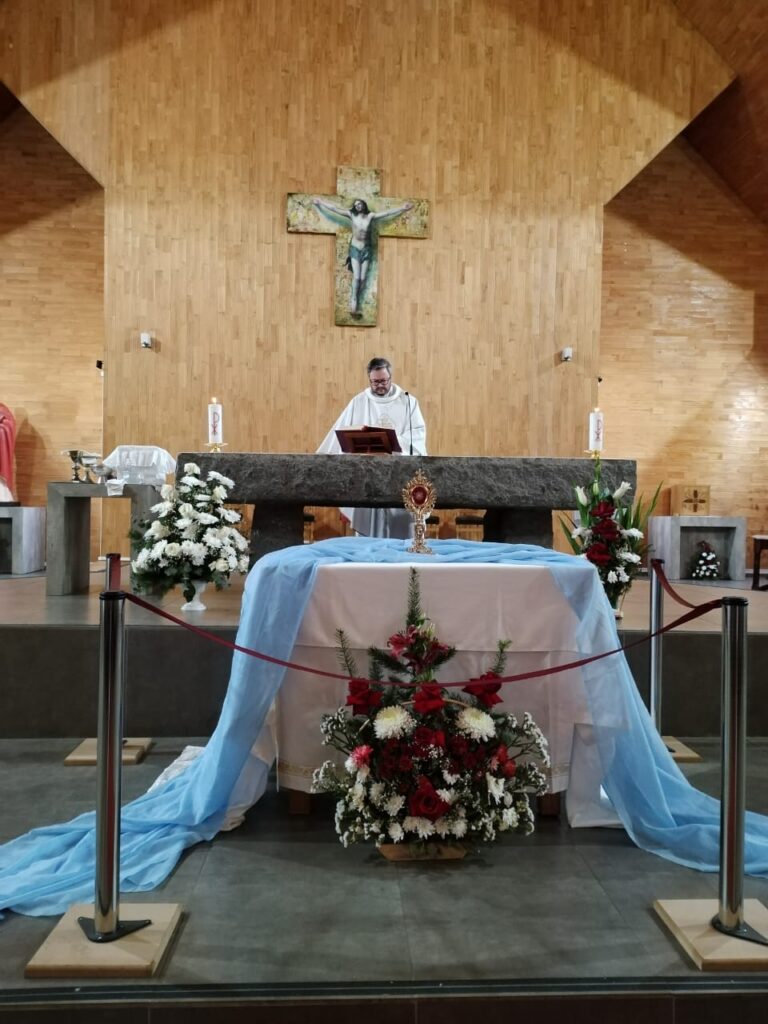 Finalmente, el jueves 5 de septiembre, la Reliquia llegó hasta la Parroquia San Pablo de Chiguayante, donde fue recibida con gran devoción y gratitud por los fieles de la comunidad, quienes esperaron su arribo rezando el Rosario, luego celebraron la Santa Misa y finalmente participaron en la adoración del Santísimo Sacramento.