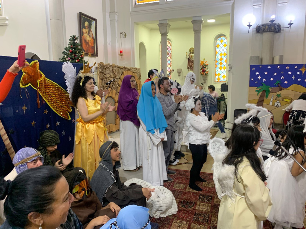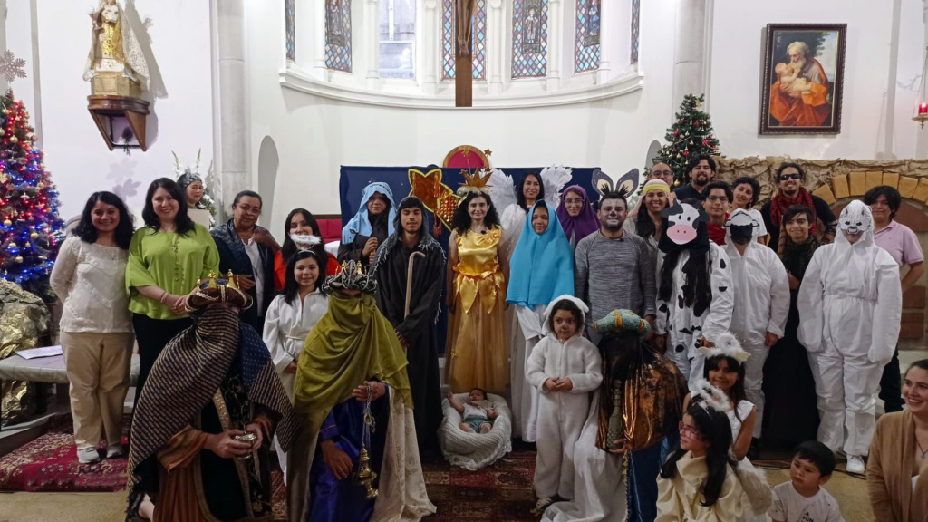 La tarde del sábado 7 de enero, en la Parroquia Del Sagrario de Concepción se realizó una obra de teatro llamada “Un inolvidable cuento de Navidad”, donde se resaltó la importancia de agradecer, acompañar y cuidar a nuestros adultos mayores, y también se abordó el tema del bullying. En la representación, una nieta contaba a su abuela un cuento de Navidad para ayudarla a recordar este importante acontecimiento, y un burrito -víctima de bullying por sus grandes orejas- tenía la misión de acompañar a la estrella hasta Belén, presenciando en su camino el momento de la anunciación, la visita de la Virgen María a su prima Isabel, también cuando el Ángel le habló a San José y el nacimiento del Niño Jesús.