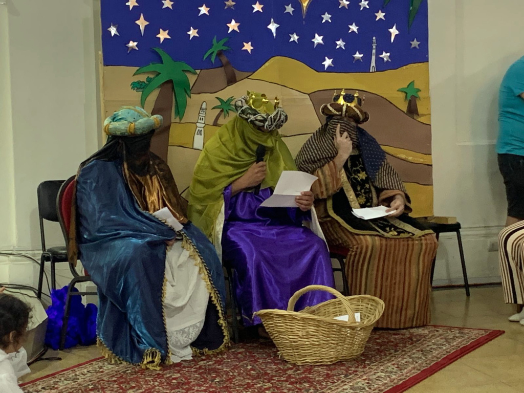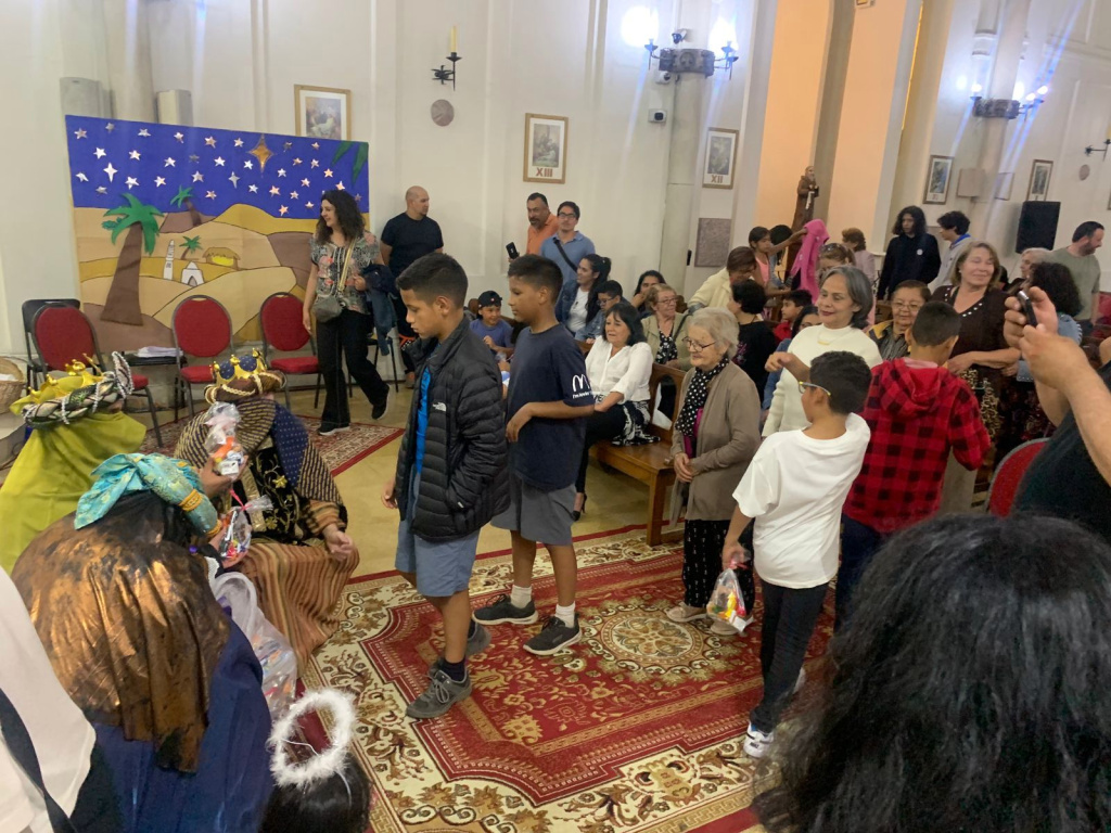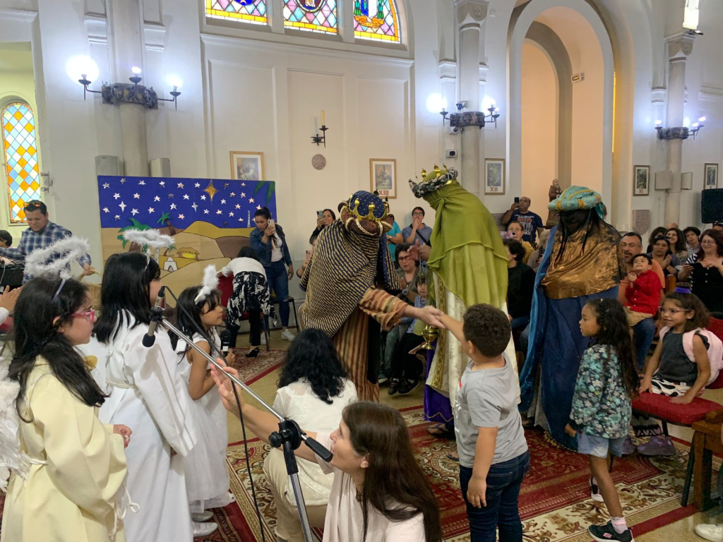Tras finalizar la obra, la comunidad recibió la visita de los Reyes Magos, quienes tras adorar al Niño Jesús y entregarle sus regalos, leyeron las cartas escritas por los niños.