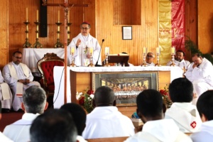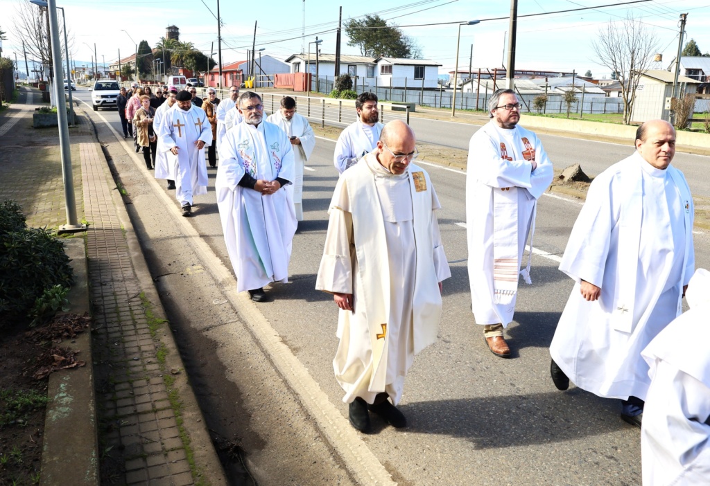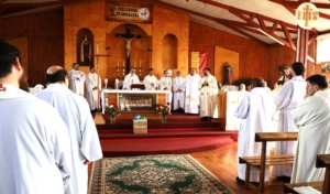 Allí compartieron un desayuno, luego reflexionaron acerca de la vocación sacerdotal, ayudados por el testimonio del padre Pedro Gómez, párroco de la Parroquia Cristo Peregrino del Valle Araucano. Luego, realizaron una procesión en compañía de fieles de la comunidad, para finalmente compartir una Eucaristía presidida por el Arzobispo de Concepción Monseñor Sergio Pérez de Arce SS.CC., y concelebrada por los Obispos Auxiliares Oscar García y Bernardo Álvarez.