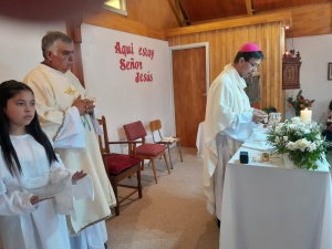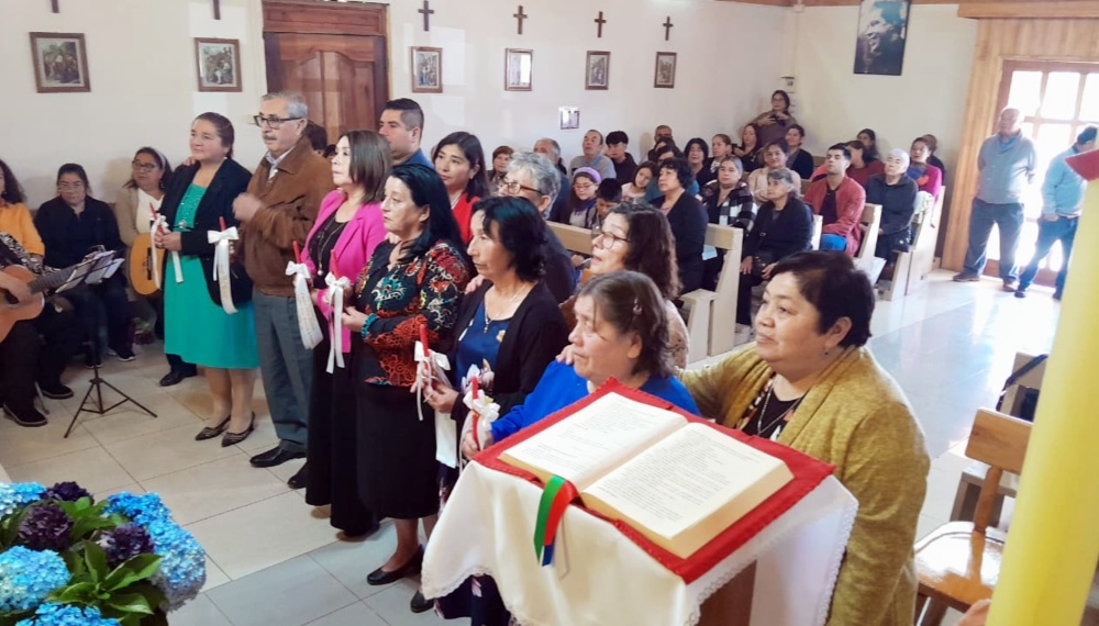 Seis adultos recibieron el sacramento de la Confirmación de manos del Vicario Episcopal de Arauco y Obispo Auxiliar de Concepción, Monseñor Oscar García, en la Capilla San Juan Bautista de Conumo, perteneciente a la Parroquia Cristo Peregrino del Valle Araucano, la mañana de este domingo 7 de abril.