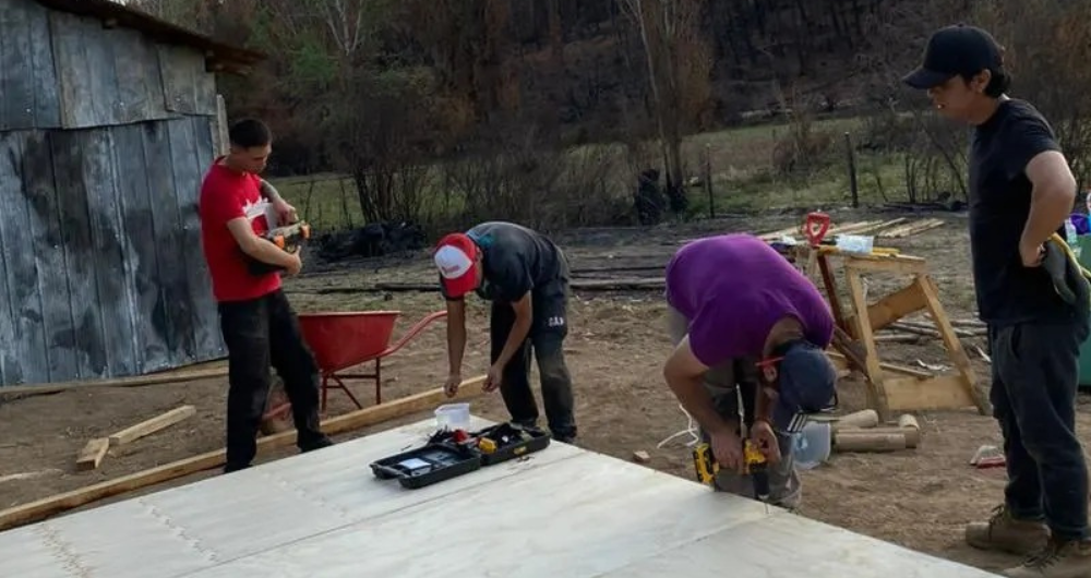 Voluntarios de diversos movimientos y agrupaciones han llegado hasta los campos de Santa Juana para colaborar en la reconstrucción de las viviendas de las personas afectadas por los incendios ocurridos en febrero.