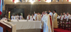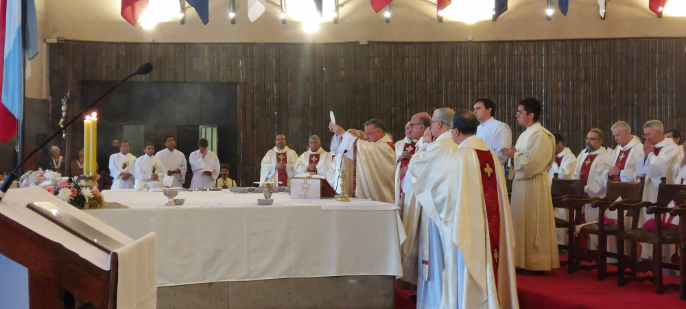 La Eucaristía fue presidida por monseñor René Rebolledo, arzobispo de La Serena y presidente de la Conferencia Episcopal de Chile. Y contó con la presencia de la mayoría de los Obispos del país, autoridades de ambas naciones, representantes de las Fuerzas Armadas y civiles, y gran cantidad de fieles.