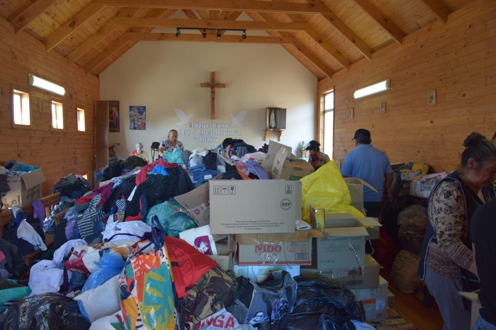 Carlos Garrido señaló que como el colegio resultó siniestrado, sólo quedaba la capilla para tener un centro de acopio, “así que fui a conversar con las personas encargadas y ellos nos facilitaron el lugar por mientras, para poder ordenar y entregar lo que la gente nos ha traído”.