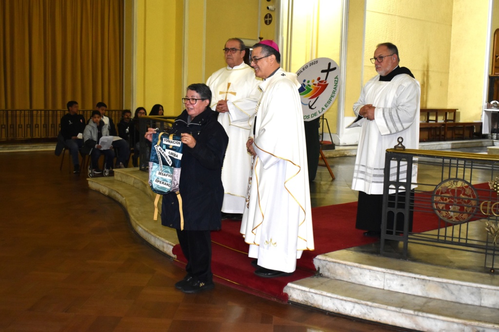 Monseñor Sergio destacó las tres motivaciones de la misa del día. “Primero, la fiesta de la Asunción de la Virgen, luego, en Chile siempre se celebra el 15 de agosto el día de la Vida Consagrada, por lo que damos gracias a Dios por las vocaciones y nos unimos al peregrinar de este grupo de hermanos y hermanas que vive su Jubileo hoy. Y luego, podríamos decir que nos unimos a la Virgen que es peregrina de la esperanza, que se puso en camino hasta llegar al encuentro con el Señor”.