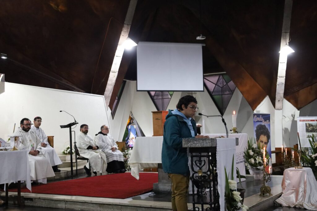 Luego de un momento de oración y veneración de la reliquia, se celebró la Santa Misa, que fue presidida por el obispo auxiliar de Concepción, monseñor Oscar García, junto al asesor de la Pastoral de Juventud, padre Ricardo Valencia, y al vicario para la Pastoral, padre César Pedreros.