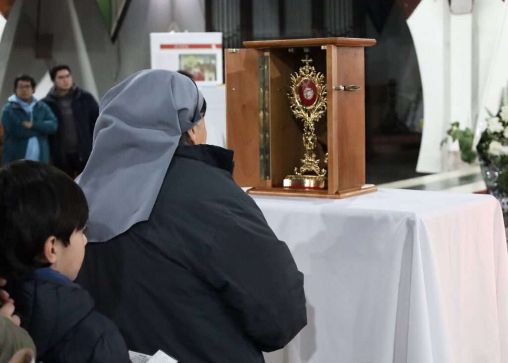 Al término de la Eucaristía, monseñor Oscar García impartió la bendición con la reliquia del beato Carlo Acutis, y luego los presentes pudieron acercarse nuevamente a venerarla.