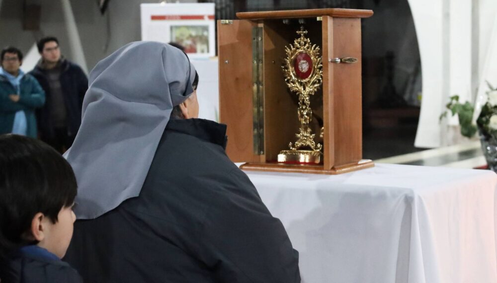 Finalmente, recordó que Carlo Acutis pronto será canonizado y señaló que “los santos nos hablan de Dios y nos muestran a Jesús, igual que la Virgen María nos dicen: Hagan todo lo que Jesús les diga. Y hoy Carlo Acutis nos dice que participando de la Misa estamos cerca de Jesús y que cerca de Jesús podemos ser felices. No nos alejemos de Él y quizás alguno llegue a ser santo también. Las reliquias de los santos nos recuerdan eso, que la santidad es tocable, es palpable, que está cerca nuestro, que la santidad no es un don imposible, sino alcanzable si es que somos dóciles a la gracia del Señor, que se nos entrega en cada Misa”.